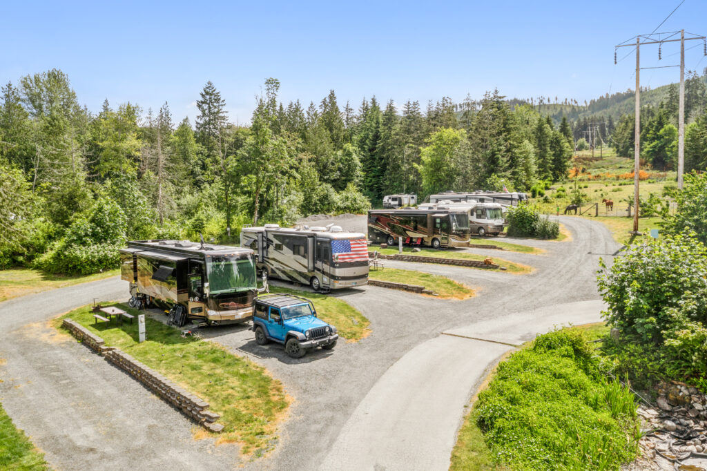 Elwha RV Park & Campground offers a wide variety of RV and tent sites surrounded by forested landscapes, gardens, and peaceful open spaces. Whether you need a big-rig pull-through, a shaded back-in site, a wooded tent site, or a rustic dry-camp option, we have sites to fit every style of camping. All guests enjoy fiber-optic Wi-Fi, clean restrooms and showers, on-site laundry, walking paths, and easy access to Olympic National Park.
